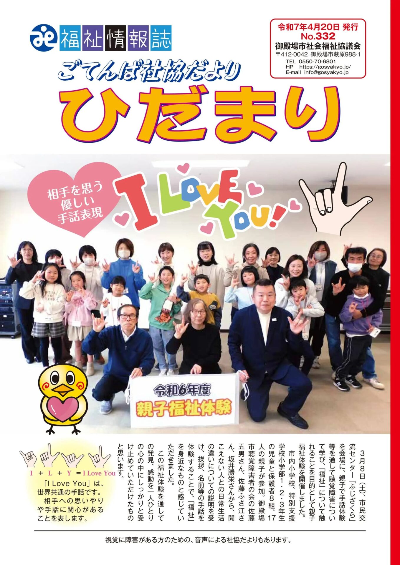 ひだまりNo.332が発行されました。 ・令和6年度親子福祉体験を開催 ・令和7年度市社協事業計画 ・感謝のページ ・受講者募集 詳細はコチラ 御社協
