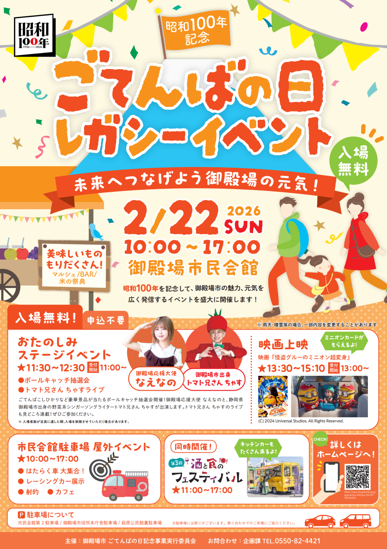 昭和100年記念 大型イベント「ごてんばの日 レガシーイベント」開催! 御殿場市民会館で、御殿場の魅力を広く発信するイベントが開催されます。ステージショーからグルメ、体験コーナーまで、盛りだくさんの内容です。 開催概要 […]