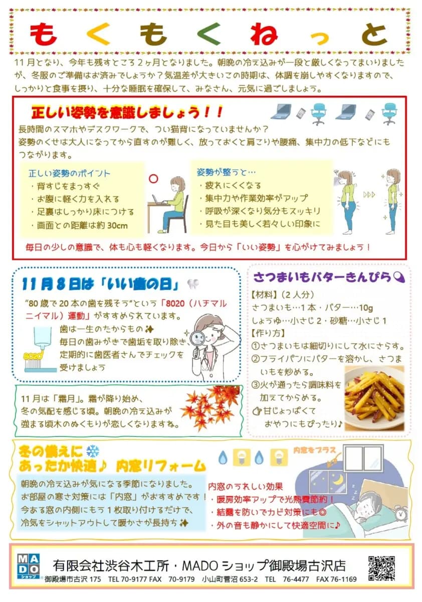 「もくもくねっと」12月号ができました! 今月は、寒い季節を元気に過ごすためのちょっと嬉しい “あったか情報” を集めています。 🧣 冬の冷え対策 🏠 内窓リフォームで快適に 🍊 みかんジャムの簡単レシピ 🌞 冬至のお話 […]