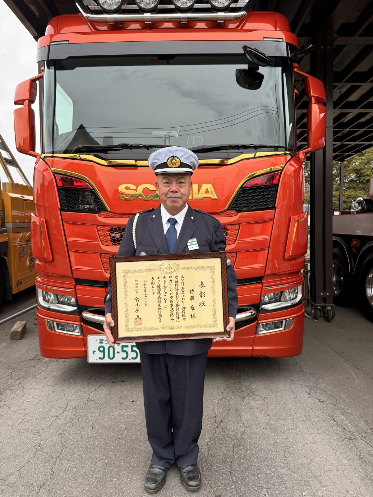 当社 代表取締役 佐藤社長が『令和7年度県知事表彰 交通安全功労賞』を受賞しました。 【功績概要】 多年、御殿場市交通指導員として、交通安全思想の普及や街頭指導に尽力するなど、交通事故の防止と交通道徳の向上に寄与した。 […]