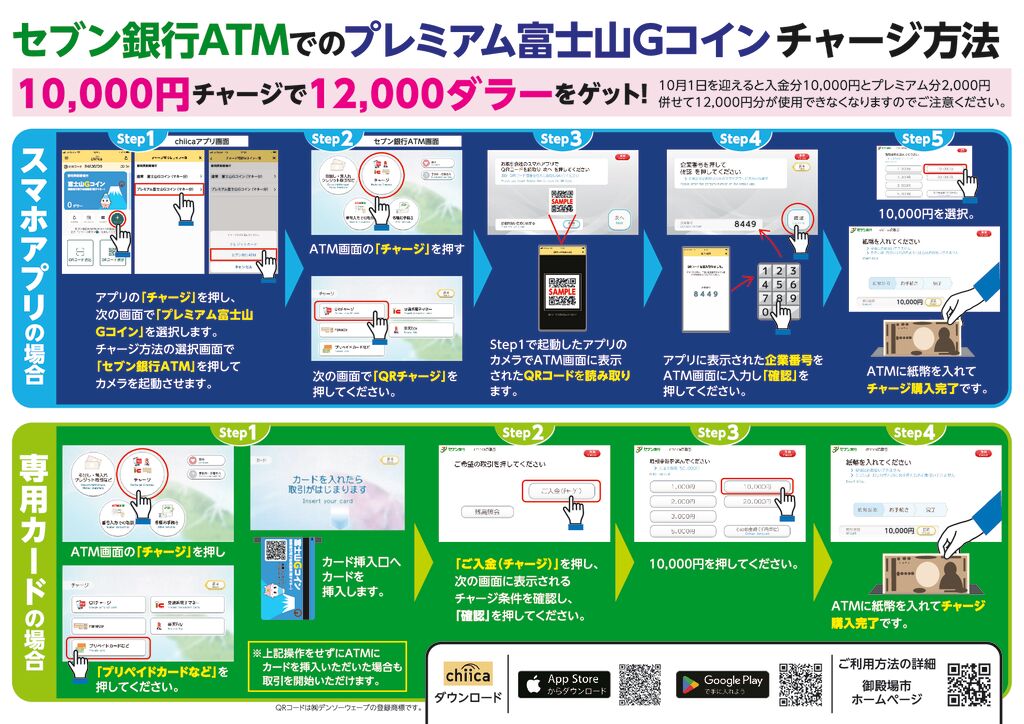 富士山Gコインは全国のセブン銀行ATMでチャージを行うことができます。 入金間違い等での払い戻し・振替には対応できませんので、お気を付けください。 7月15日(火)から8月31日(日)までセブン銀行ATMでは、「通常 富 […]