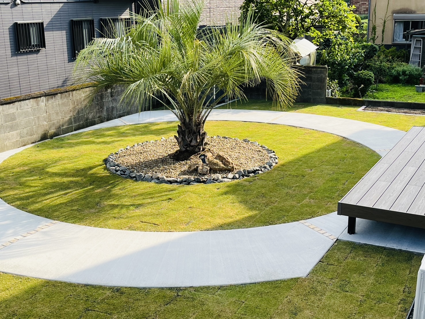 南国の植栽が映えるリゾート風なお庭を作りました。ココスヤシを曲線で囲み、夜は照明でココスヤシのシルエットが際立ち一層オシャレになります。門柱色に合わせたグレー系の割栗石を詰めたガビオン門柱は、和モダンな雰囲気を演出してく […]