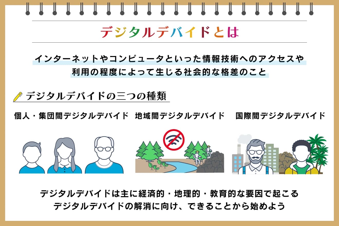 デジタルデバイドとは、インターネットやコンピュータといった情報技術へのアクセスや利用の程度によって生じる社会的な格差を指します。経済・地理・教育など、デジタルデバイドを引き起こす要因はさまざまです。この記事では、デジタル […]