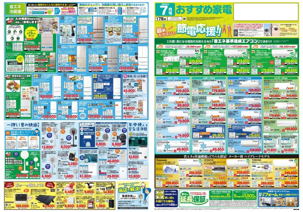 (株)イケヤのおすすめ家電2025年7月号は、「最新エアコンで!節電応援‼」 この夏!気になる電気代を抑えるなら「省エネ基準達成エアコン」で決まり‼ 省エネも快適機能もどちらも満足!メーカー別ハイグレードモデルもあります […]