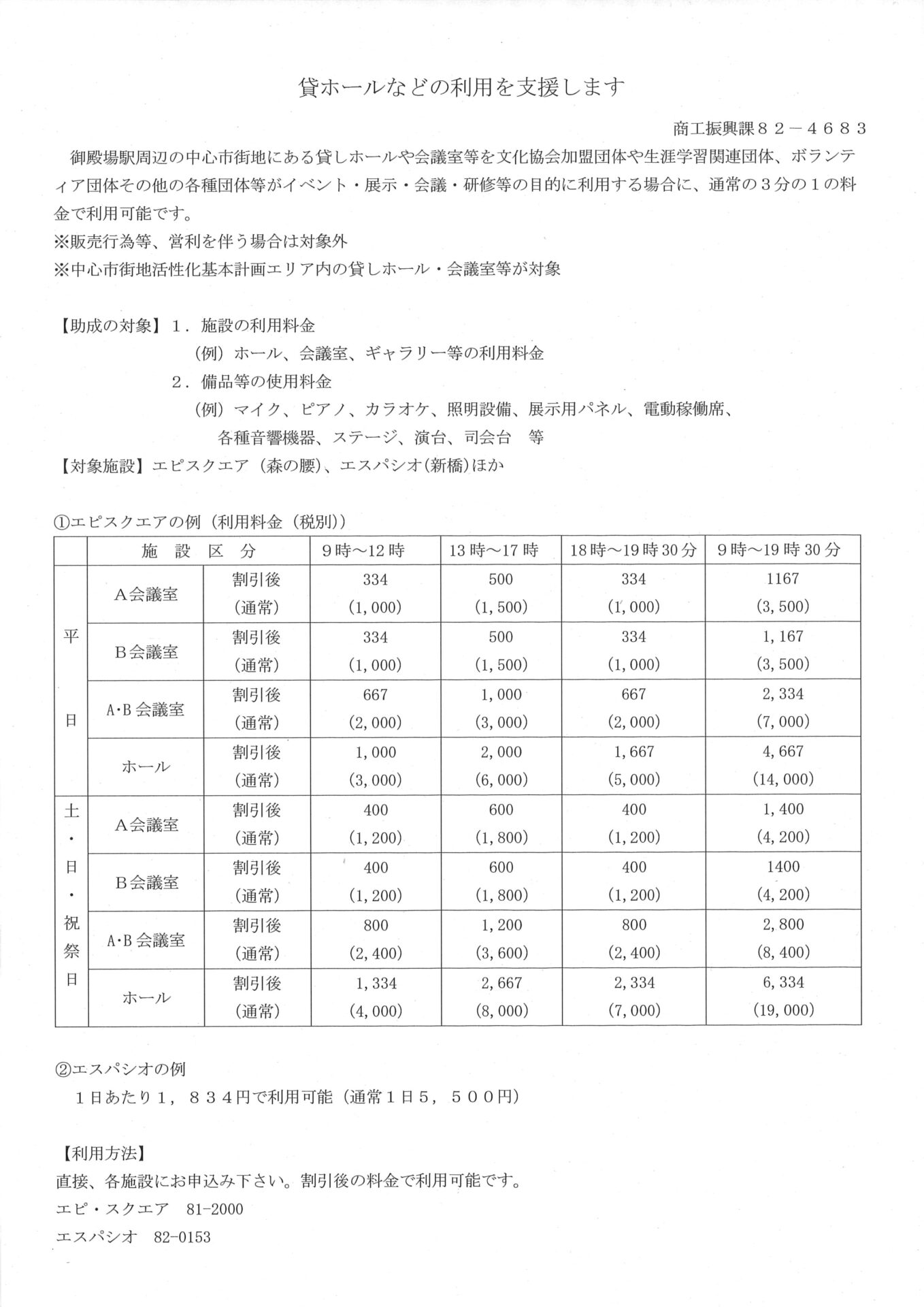 貸ホールなどの利用を支援します 御殿場駅周辺の中心市街地にある貸しホールや会議室等を文化協会加盟団体や 生涯学習関連団体、ボランティア団体その他の各種団体等がイベント·展示·会議·研修等の 目的に利用する場合に、通常の3 […]