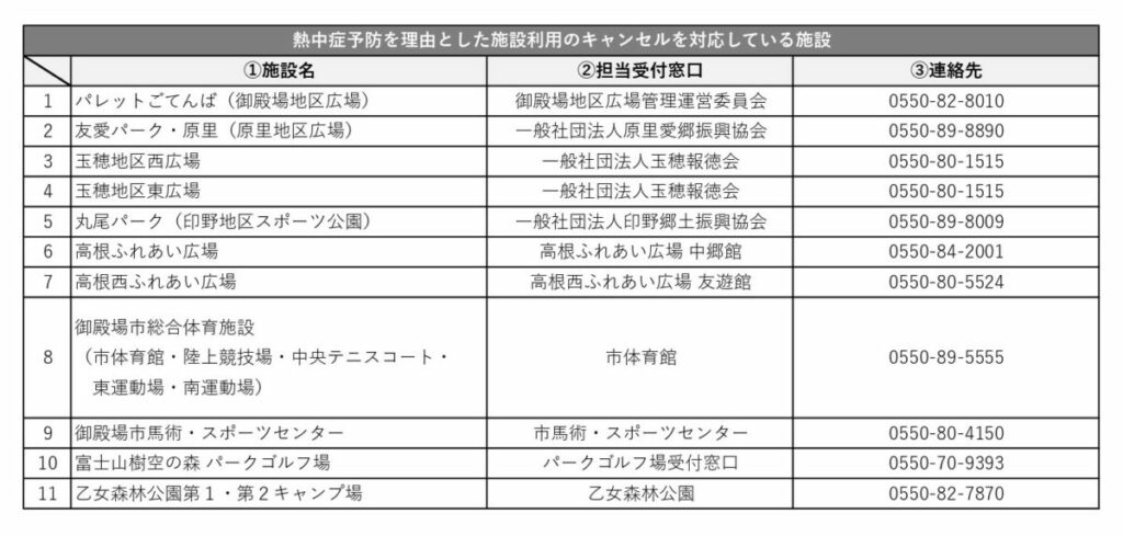 近年の気候変動の影響により熱中症による救急搬送者数は増加傾向にあり、国などの指針では暑さ指数(WBGT)が31以上となる場合には、「運動は原則中止」とされております。 ついては、施設利用者の熱中症への安全対策を図ることを […]