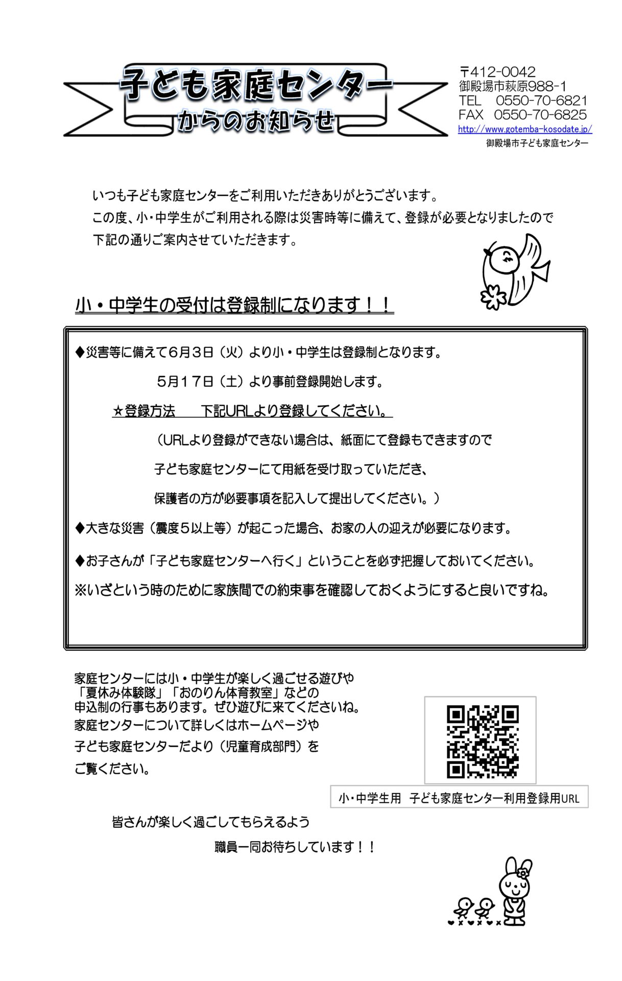 市子連の活動の拠点として使わせていただいている交流センターふじざくらの子ども家庭センターの利用方法が変わりましたので、確認と登録をお願いいたします。 すでに、小中学校のC-ラーニングでもお知らせいたしましたが、子ども会に […]