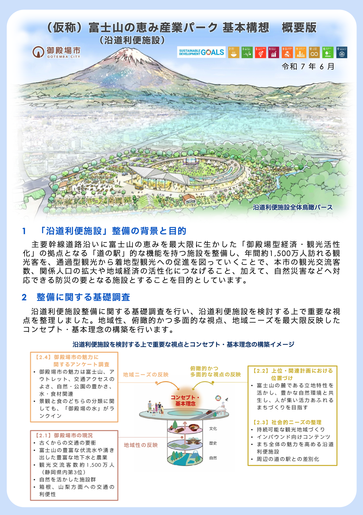 市が、(仮称)富士山の恵み産業パークとして、主要幹線道路沿いに富士山の恵みを最大限に生かした「御殿場型経済・観光活性化」の拠点となる「道の駅」的な機能を持つ施設整備に向けた基本コンセプトや基本理念、施設整備や管理運営にお […]