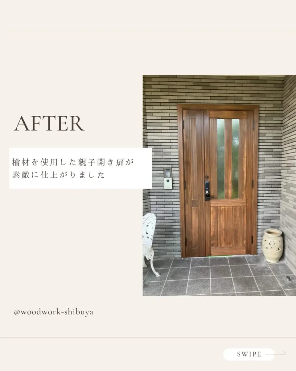 茨城県にお住まいのお客様宅にて、新しい玄関扉を施工させていただきました! 檜材を使用した親子開き扉で、温もりと高級感を兼ね備えた美しい玄関が完成しました✨ ◇施工内容 ・親子開き扉(檜材) ・ 明かり取り付きペアガラス( […]