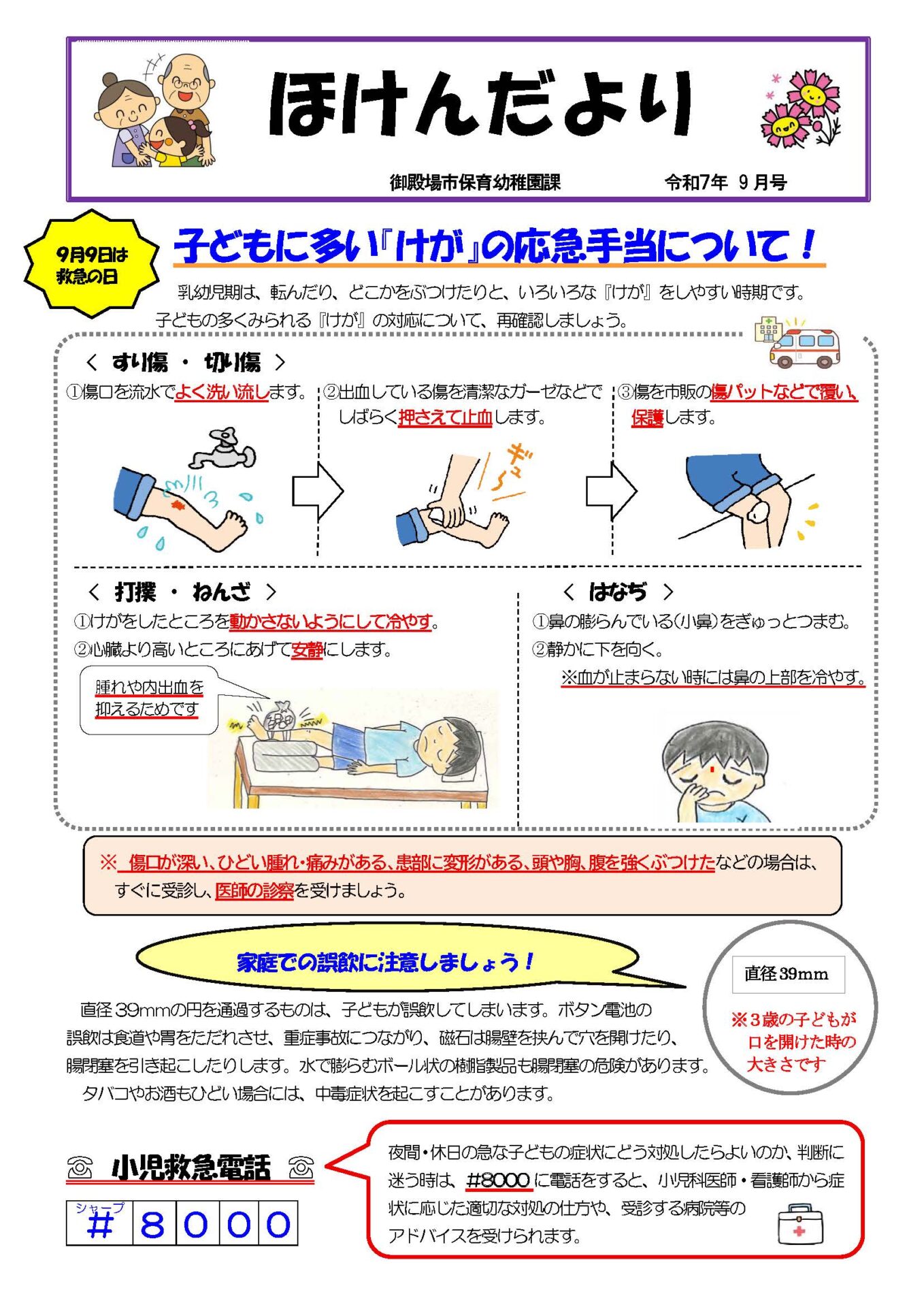 子どもに多い『けが』の応急手当について! 乳幼児期は、転んだり、どこかをぶつけたりと、いろいろな『けが』をしやすい時期です。子どもの多くみられる『けが』の対応について、再確認しましょう。傷口が深い、ひどい腫れ・痛みがある […]