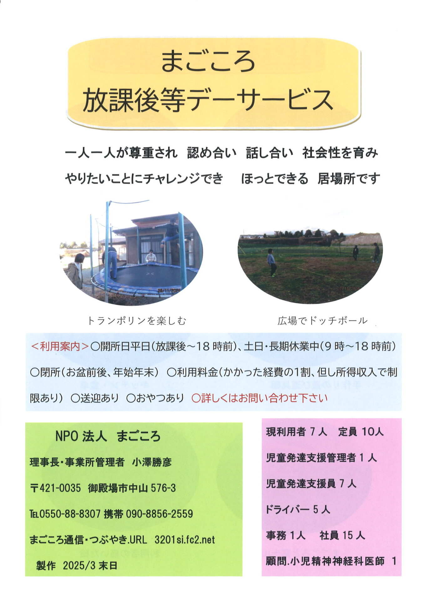 一人一人が尊重され、認め合い、話し合い、社会性を育み、やりたいことにチャレンジでき、ほっとできる 居場所です。 開所日:平日(放課後~18時前)、土日・長期休業中(9時~18時前) 詳細はコチラ 市民活動支援センター